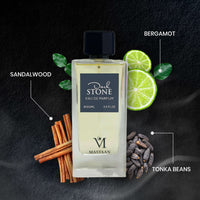 The ReImagination of Fragrance Norms! Picture yourself wandering through the groves of Cascade Valley! Vibrant citrusy & deep, earthy essence of aged Oakwood. Dark Stone is a powerful and alluring fragrance that captures the essence of strength and masculinity.With its bold combination of top notes, middle notes, and base notes, this scent is both complex and intriguing, making it the perfect choice for the modern man who exudes confidence and charisma.